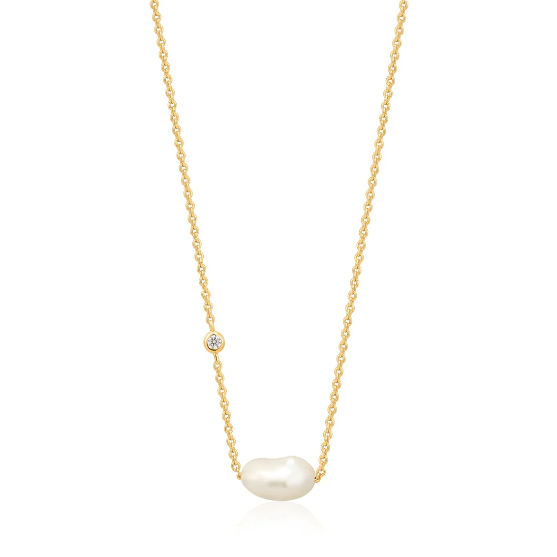 Dabei reicht es einfach nicht aus, super einfach. Entdecken Sie diese atemberaubende Perlenkette, versehen mit einer einzigartig geformten barocken Süßwasserperle, die für sich spricht. Stilvoll auf einer zarten Kettenkette sitzend, wird die Perle mit einem einzelnen kubischen Zirkonienstein kombiniert, was den perfekten asymmetrischen Look erzeugt. Inspiriert vom Laufsteg ist dies dein neues Alltags-Must-have.