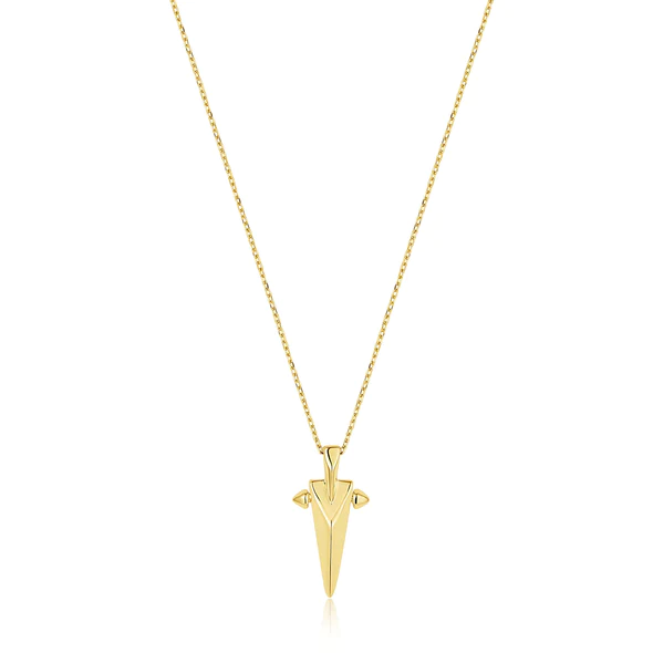 Verleihen Sie Ihrem Schmucklook einen Hauch von Punkrock mit diesem schicken geometrischen Anhänger, der an einer zarten Kette befestigt ist. Bei dem Anhänger mit doppelten Nieten dreht sich alles um das klobige Spitzendesign, das auf den futuristischen, kantigen Schmucktrend dieser Saison anspielt. Gefertigt aus 14 Karat vergoldetem Sterlingsilber, können Sie es mit passenden Spike-Nieten kombinieren.
