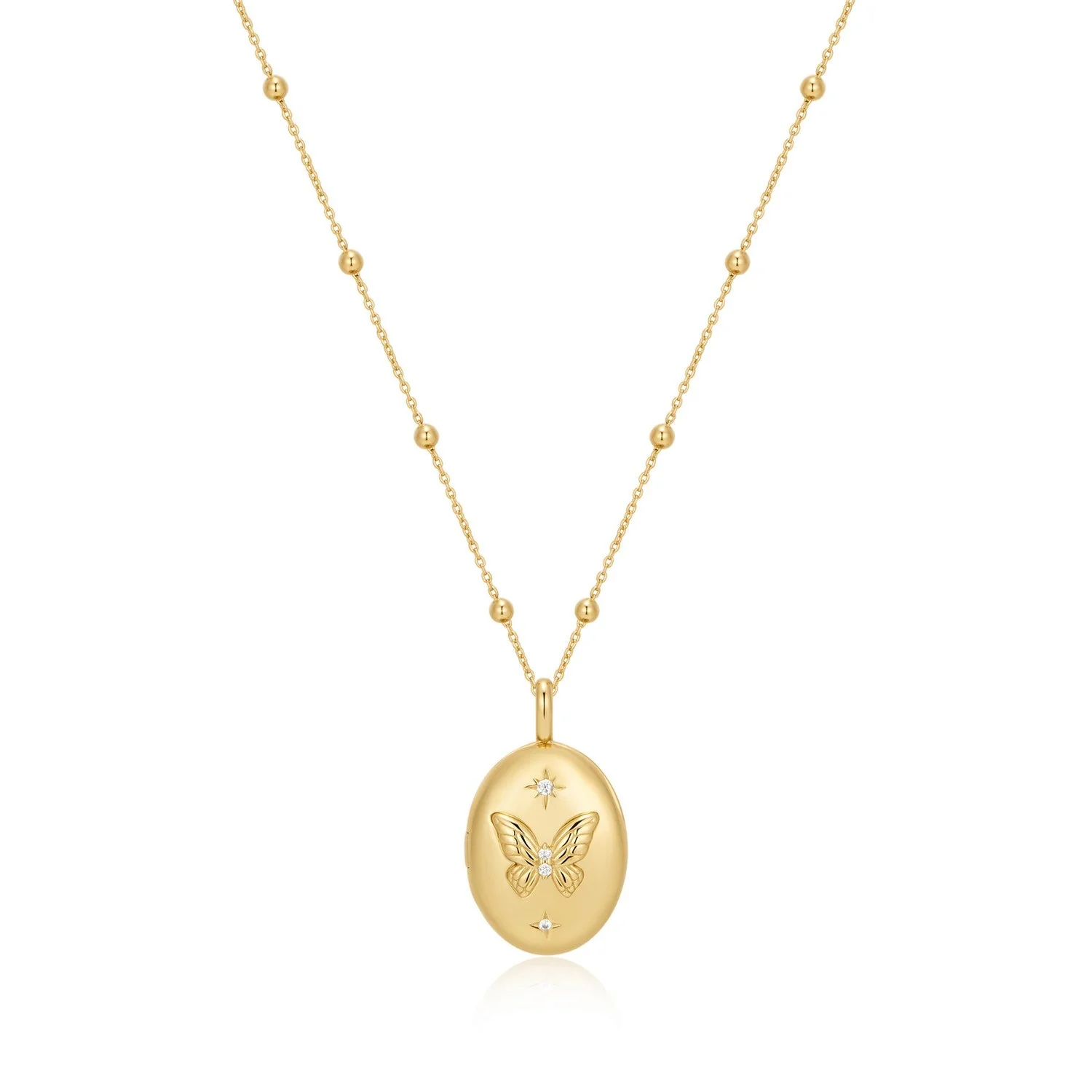 Eine elegante Basic-Kette zum Schichten oder alleine tragen, sorgt die Ania Haie Gold Butterfly Locket Necklace sofort für Glanz.