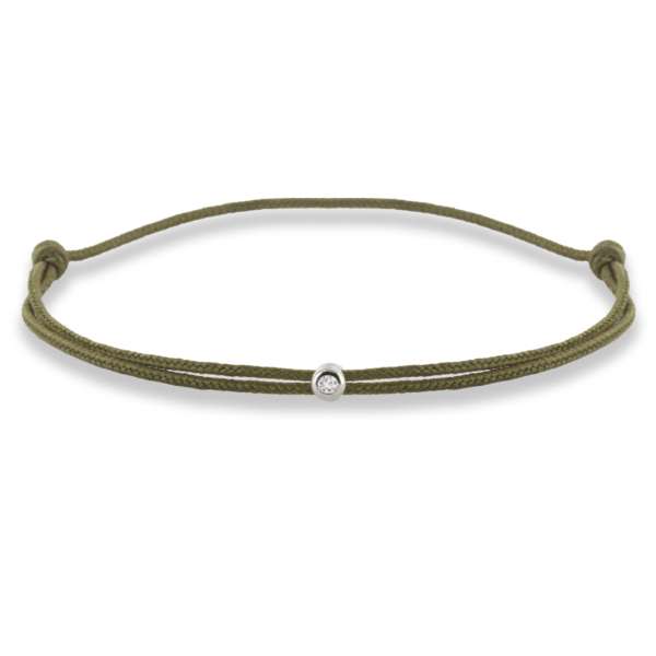 Es ist auf einem durchgefärbten Nylonfaden mit doppelter Umdrehung montiert und mit einem 0,03 Karat schweren Diamanten verziert. Es ist in rhodiniertes 925er Silber oder in rosa oder gelbes Vermeil eingefasst und wird Ihnen in einer Box, einem Beutel und mit einem Echtheitszertifikat geliefert.