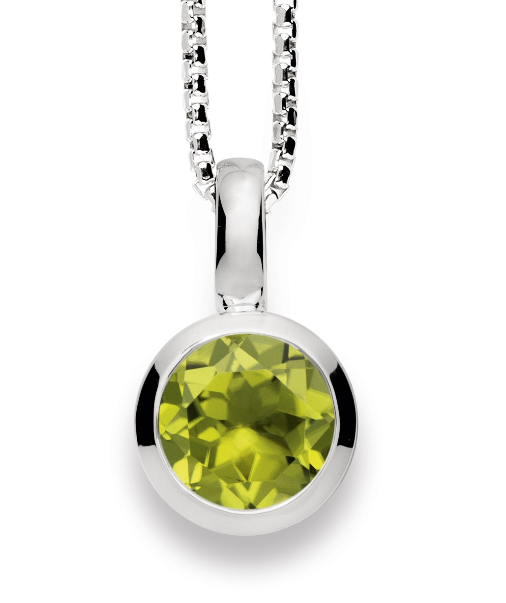 Zeitlos-elegantes Basic-Schmuckstück: Der fein geschliffene, farbintensive Peridot mit 1,30ct macht diesen zeitlosen Anhänger aus 925/- Sterlingsilber mit einem Durchmesser von 0,9cm zu einem magischen Hingucker. Perfekt in Kombination mit passendem Ring und Ohrsteckern.