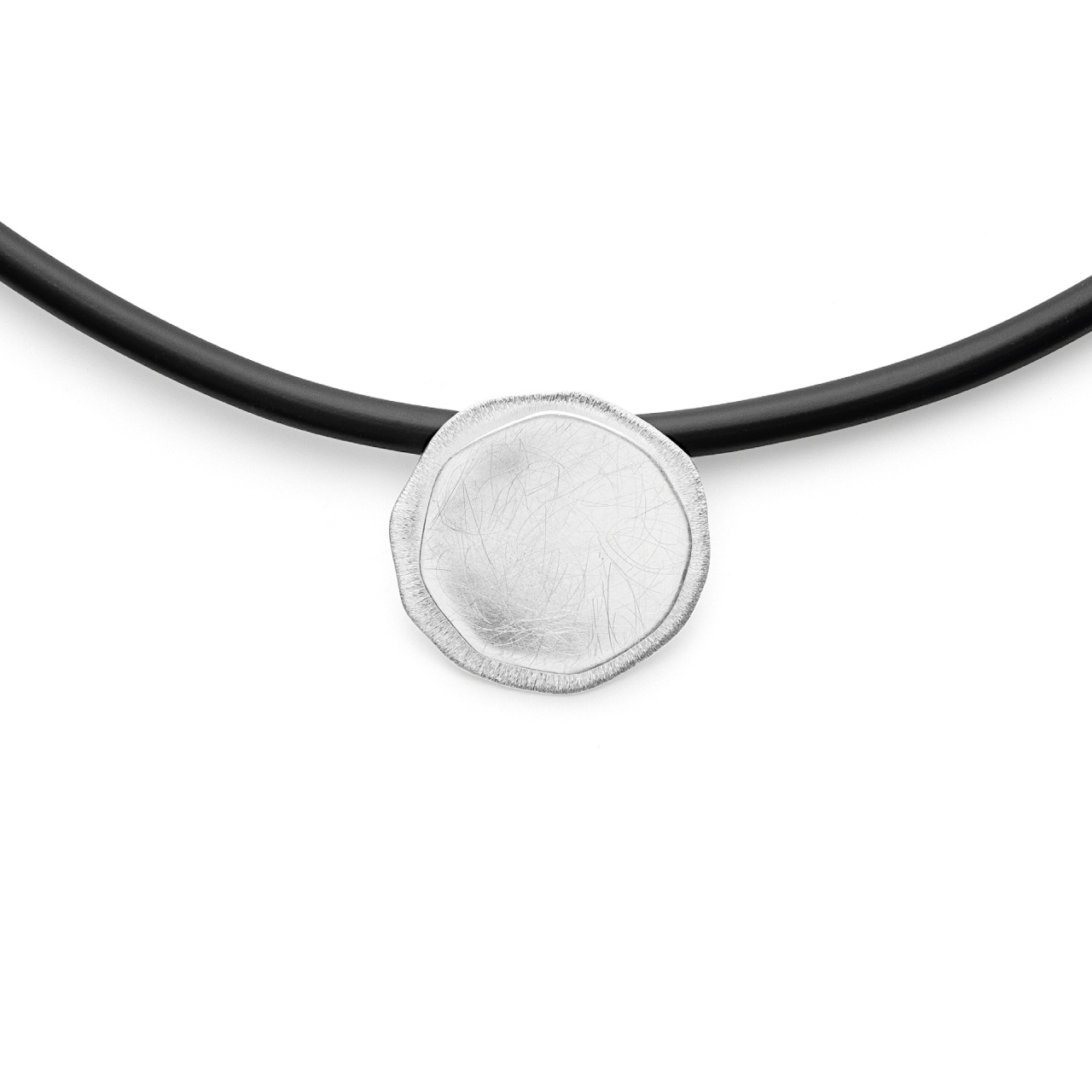 Geometrisch inspirierter Anhänger aus 925/- Sterlingsilber mit durchweg charakteristischer Oberflächengestaltung. Feine Linien werden von Hand mit Spezialbürsten in die Oberfläche eingearbeitet. Ein wahres Statement-Schmuckstück aus der Feder des Osnabrücker Designers Dietmar Sebastian, welches insbesondere durch die handwerkliche Ausstrahlung zum besonderen Hingucker wird. Erhältlich mit passenden Ohrsteckern, passendem Ring sowie passender Brosche.