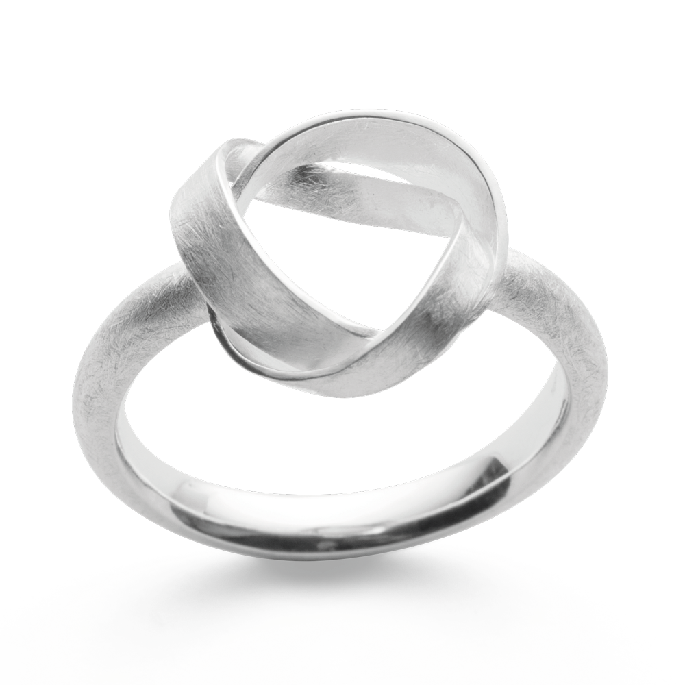 Strahlendes 925/- Sterlingsilber dreht und windet sich zu einem originellen, mitten offen gehaltenen Knoten-Ring aus der Feder der bastian inverun Designerin Nadine Resch. Zum sportlichen Alltagsoutfit oder zum eleganten Business-Look, dieser originelle Fingerschmuck mit kratzmattiertem Finish ist ein echter Schmuck-Allrounder.