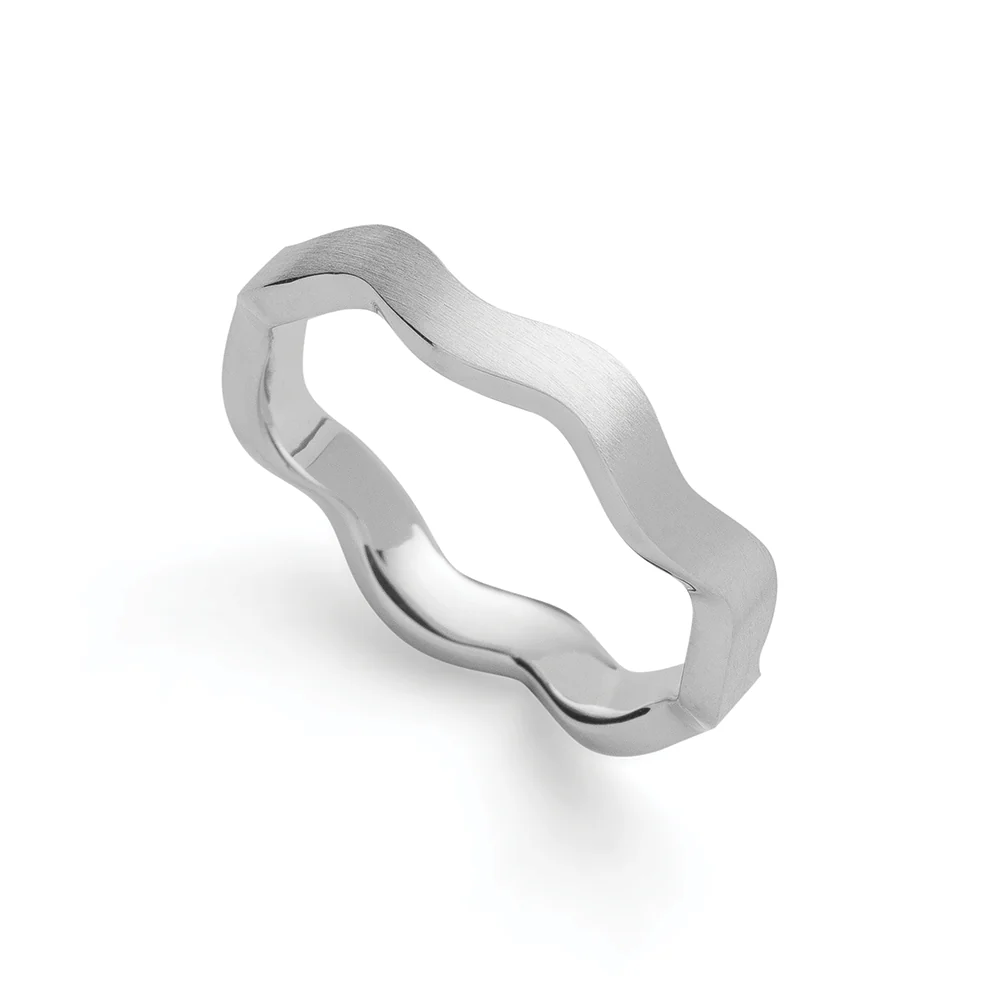 Filigran gearbeiteter Ring in attraktiver Wellen-Optik (Design von Nadine Resch) aus der neuen Produktlinie "Ocean Waves". Gefertigt aus strichmattiertem und an den Seiten poliertem 925/-Sterlingsilber. Erhältlich und perfekt in Kombination mit den dazugehörigen Scharnier-Creolen und dem dazugehörigen Armreif. Ein wunderschönes, sportlich-elegantes Schmuckstück, an welchem man lange Freude haben wird. Dieser Ring eignet sich besonders gut um auf dem Zeigefinger getragen zu werden.