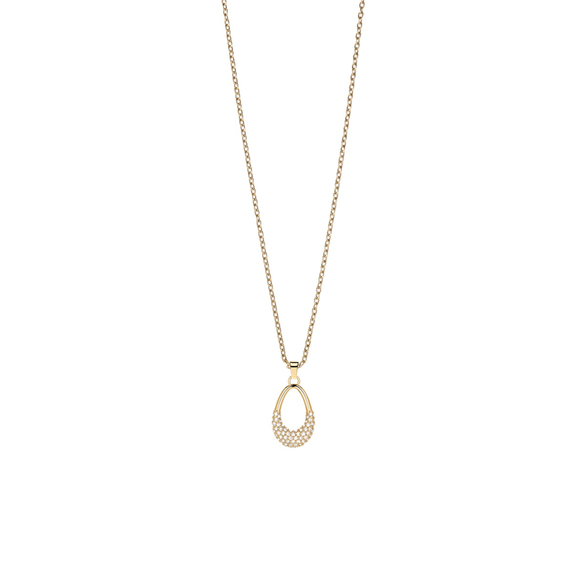 Die Halskette 457-27-500 besticht durch ihre harmonische Verbindung von Eleganz und warmem Glanz. Das feine Tropfendesign in edlem Goldton wird von funkelnden, präzise eingefassten Kristallen akzentuiert, die das Licht in einem sanften, luxuriösen Schimmer reflektieren. Der Anhänger vereint feminine Raffinesse mit moderner Klarheit und wird so zu einem zeitlosen Schmuckstück, das jeden Look veredelt.