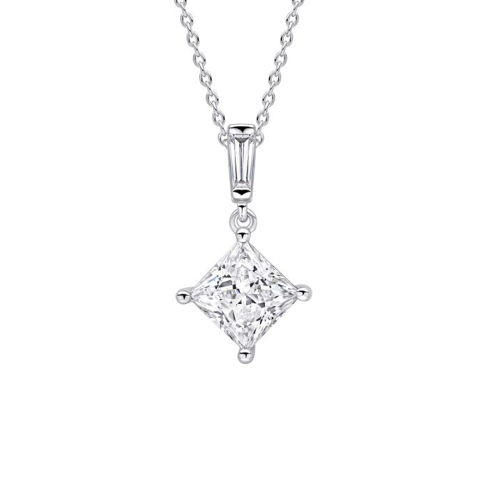 Verwandeln Sie jeden Moment in eine Angelegenheit auf dem roten Teppich mit diesem atemberaubenden Anhänger, der bei jeder Bewegung funkelt. Dieser Anhänger aus Diamonfire-Zirkonia-Steinen ist aus Sterlingsilber gefertigt und mit einer dreifachen Beschichtung aus Platin, Palladium und Rhodium versehen, die für ein hochglänzendes Finish sorgt. Das elegante Tropfendesign zeigt einen sich verjüngenden Stein im Baguetteschliff am Ballen, der zu einem hängenden Mittelstück im Prinzessinnenschliff führt, das das Licht aus jedem Winkel einfängt. Ob allein für ein auffälliges Statement getragen oder mit den passenden Ohrringen für einen abgestimmten Look kombiniert, dieser Anhänger ist der perfekte Abschluss für große Anlässe, romantische Abende und Momente, die nichts weniger als puren Glamour verdienen.