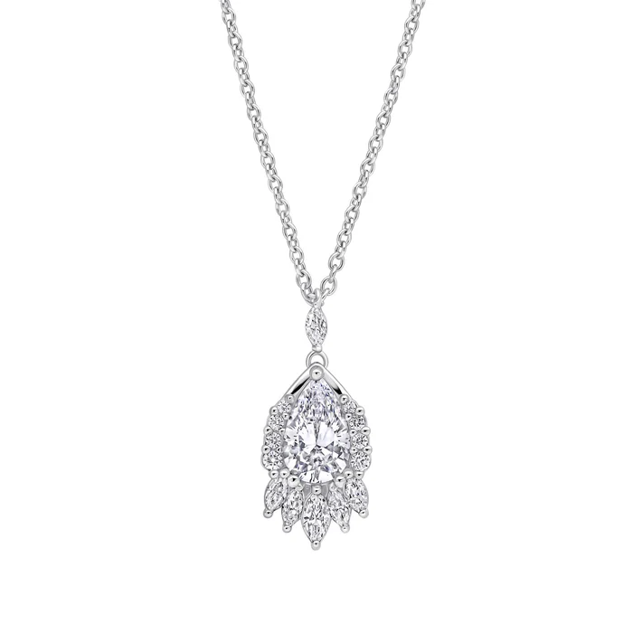 Elegant und leuchtend ist dieser Kronleuchter-Dropanhänger ein raffinierter Ausdruck zeitloser Handwerkskunst, der auf modernes Design trifft. Kunstvoll geschichtet mit Tropfen-, Marquise- und runden Diamonfire-Zirkonia-Steinen, ist die Silhouette von klassischen Formen inspiriert und mit zeitgenössischer Leichtigkeit und anmutiger Bewegung neu interpretiert. Gefertigt aus Sterlingsilber und mit einer luxuriösen dreifachen Beschichtung aus Platin, Palladium und Rhodium versehen, fängt das Anhängerdesign das Licht aus allen Winkeln ein und erzeugt einen strahlenden Glanz mit einem deutlich modernen Finish, besonders in Kombination mit passenden Ohrringen.