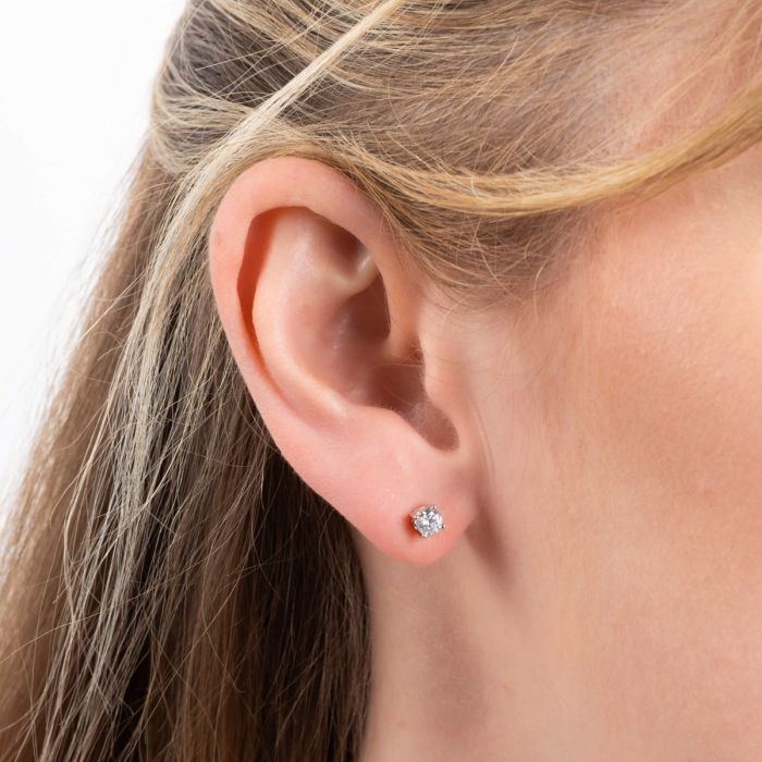 Dieses atemberaubende Schmuckstück aus Sterlingsilber verkörpert die Essenz von Eleganz und Brillanz. In der Mitte dieser Ohrringe befindet sich ein funkelnder Solitärstein aus Zirkonia, der sorgfältig von einer Fassung mit vier Krappen umschlossen wird. Das Design dieser Ohrringe strahlt einen zeitlosen Charme aus, der sie zu einem wunderbaren Accessoire für den Alltag oder sogar zu einem atemberaubenden Stück für einen besonderen Anlass macht! Tragen Sie es mit dem passenden Ring und Anhänger, um Ihren Look vollständig zu koordinieren.