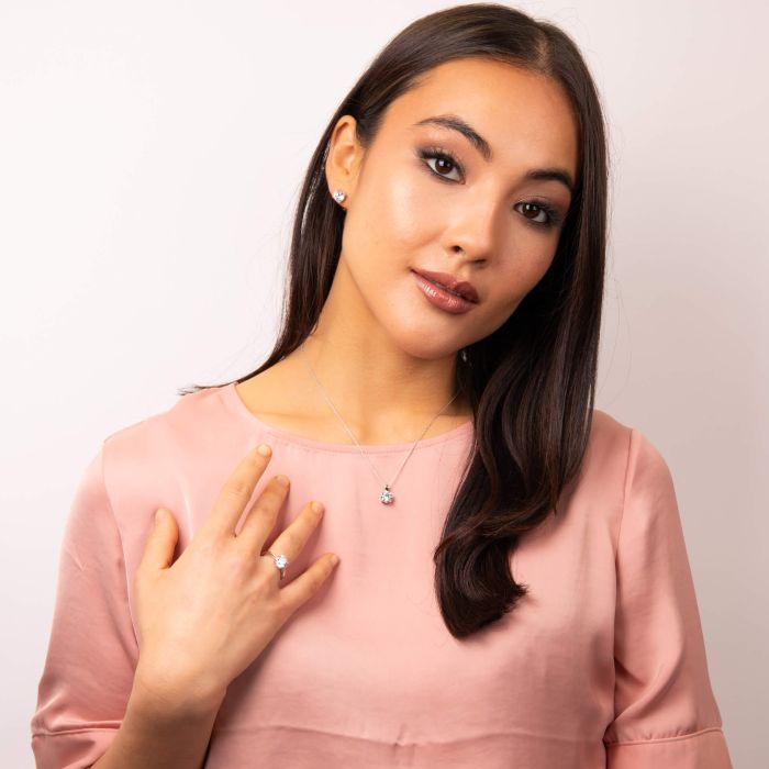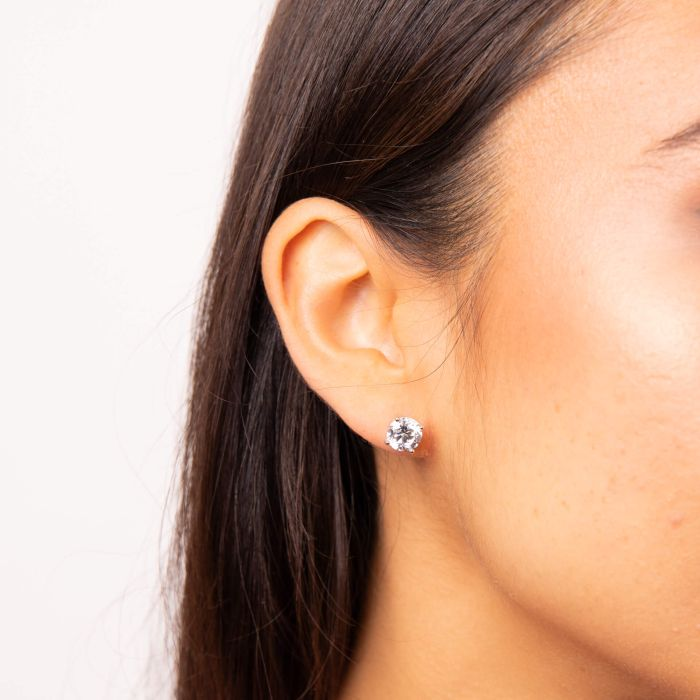 Dieses atemberaubende Schmuckstück aus Sterlingsilber verkörpert die Essenz von Eleganz und Brillanz. In der Mitte dieser Ohrringe befindet sich ein funkelnder Solitärstein aus Zirkonia, der sorgfältig von einer Fassung mit vier Krappen umschlossen wird. Das Design dieser Ohrringe strahlt einen zeitlosen Charme aus, der sie zu einem wunderbaren Accessoire für den Alltag oder sogar zu einem atemberaubenden Stück für einen besonderen Anlass macht! Tragen Sie es mit dem passenden Ring und Anhänger, um Ihren Look vollständig zu koordinieren.