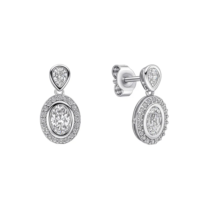 Genießen Sie raffiniertes Glitzern mit diesen Halo-Ohrringen, die für alle Anlässe mühelos glänzen. Mit Diamonfire-Zirkonia-Steinen, die geschliffen und poliert sind, um die Brillanz eines echten Diamanten zu spiegeln, sind die ovalen Mittelsteine von einem zarten Pavé-Halo umrahmt, was zusätzlichen Glanz verleiht. Gefertigt in Sterlingsilber und mit einer luxuriösen dreifachen Beschichtung aus Palladium, Platin und Rhodium versehen, fängt die elegante Drop-Silhouette bei jeder Bewegung das Licht ein. Kombinieren Sie diese Ohrringe mit dem passenden Anhänger, um ein zeitloses, aber modernes Statement alltäglichen Glamours einzufangen.