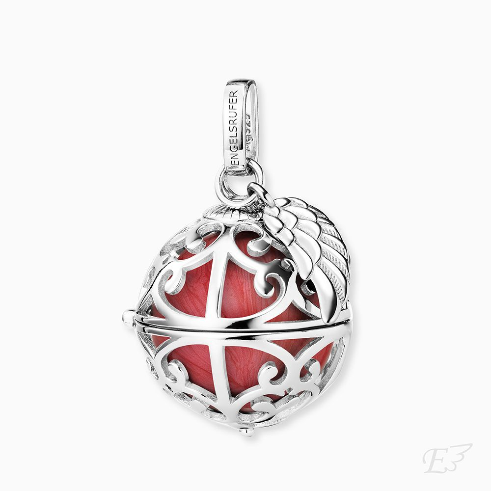 ENGELSRUFER DAMEN ANHÄNGER SILBER MIT FLÜGEL UND KLANGKUGEL PERLMUTTFARBEN IN ROT