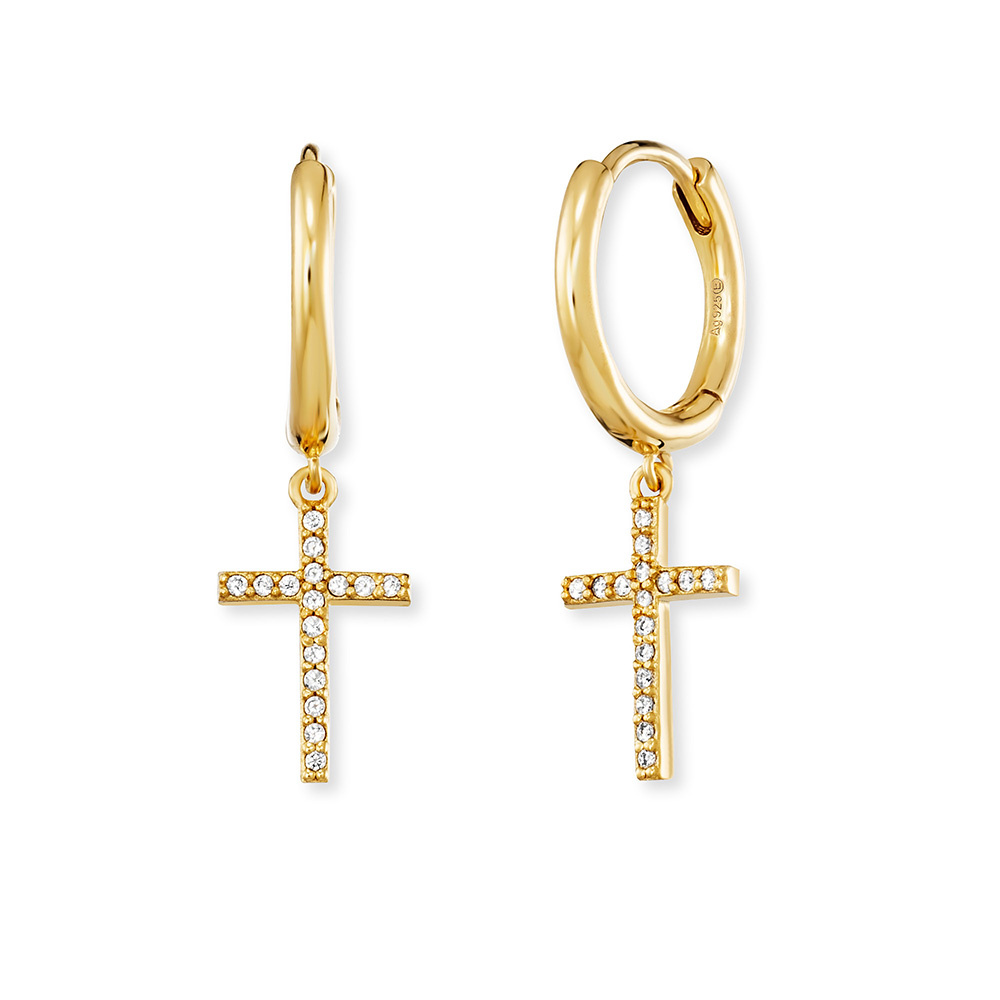Creole Lilcross mit 32 weißen synth. Zirk. | Silber Gold plated | Ø 14mm | 12mm