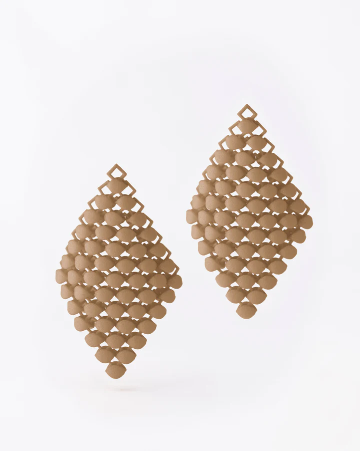 Inspiriert von der geometrischen Klarheit der Natur, greift unser Klassiker FAB Essence die Grundform eines Blattes auf. Die federleichten 3D-gedruckten FAB Essence Anhänger sind in einer fließenden, textil-artigen Struktur gestaltet und lassen sich ganz einfach an den dazu passenden FABNORA Ohrringen befestigen.