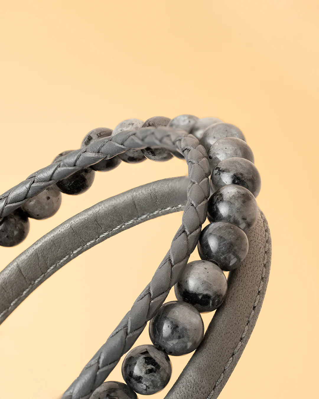Dieses Armband besteht aus echtem Nappaleder und eleganten 6 mm großen Larvikit-Steinen aus Norwegen. Dieser Stein ist ideal, um sich vor schlechten Einflüssen zu schützen, Dinge aus einer höheren Perspektive anzugehen und gibt dem Körper seine Kraft und Vitalität zurück.