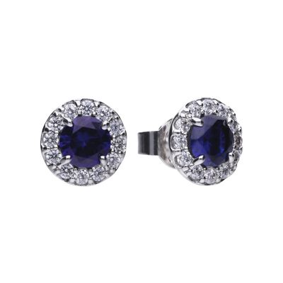 Runde Ohrstecker silber mit blauen Diamonfire-Zirkonia und Pavé-Besatz