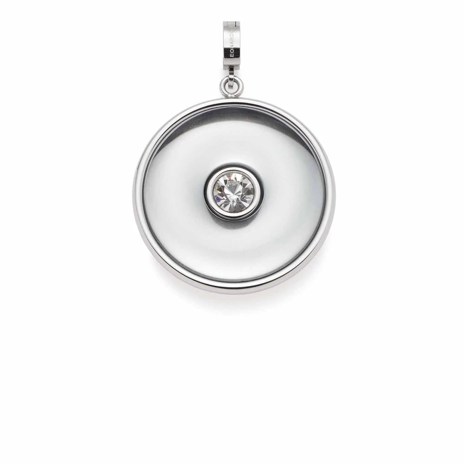 Elegant, dezent und so vielseitig einsetzbar – der Anhänger rundet einfach jeden Look mit viel Stilgefühl ab. Er zeigt sich in einer Diskus-Form aus Glas. In der Mitte ist ein weißer Zirkonia Stein platziert, der dem Anhänger einen besonderen Charme gibt. Die Rückseite des Anhängers ist geschlossen und mit einem M-Clip lässt sich der Anhänger auf leichte Weise an eine Kette aus der Clip&Mix-Serie befestigen. Eine schöne Ergänzung für zahlreiche Outfits.