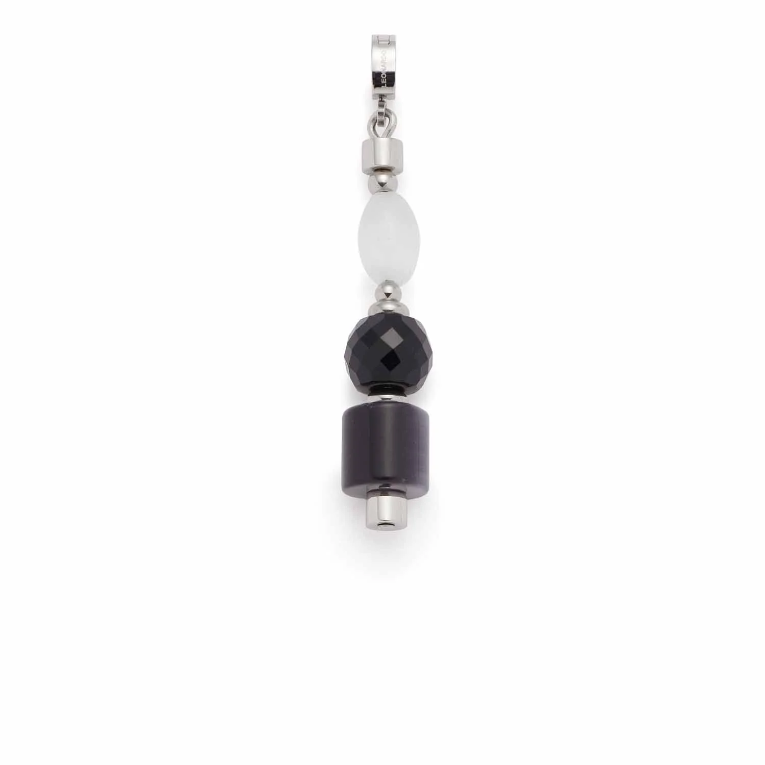 Der Anhänger wirkt dank der Mischung aus unterschiedlichen Formen so interessant und harmoniert sowohl mit eleganten als auch legeren Looks. Catseye in Schwarz, Grau und Weiß stapeln sich stimmig übereinander und werden durch kleine Stahlkugeln schön voneinander getrennt. Die Perlen finden sich auch in der Kette und dem Armband aus dem CASORIA-Set wieder – der Anhänger ist daher eine schöne Ergänzung für beide Schmuckstücke. Aber auch eine Kombination mit anderen Pieces der Clip&Mix-Serie ist mit dem Anhänger möglich.