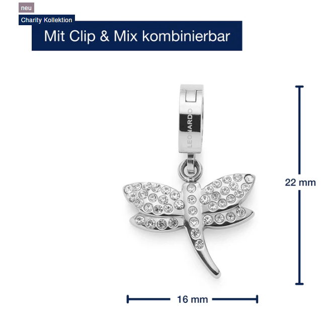 Ein Symbol für Veränderung und großen Mut – der Libellen-Charm eignet sich wunderbar für den Jahresstart. Im Gegensatz zu seiner kraftvollen Bedeutung präsentiert er sich sehr filigran und detailverliebt. Die kleine, stilisierte Libelle verzaubert mit einem funkelnden Pavé-Besatz. Kombiniere Sie im Kontrast zur kräftigen Ankerkette aus der gleichen Serie oder zu zarten Silberketten. Zum Fixieren dient ein M-Clip.