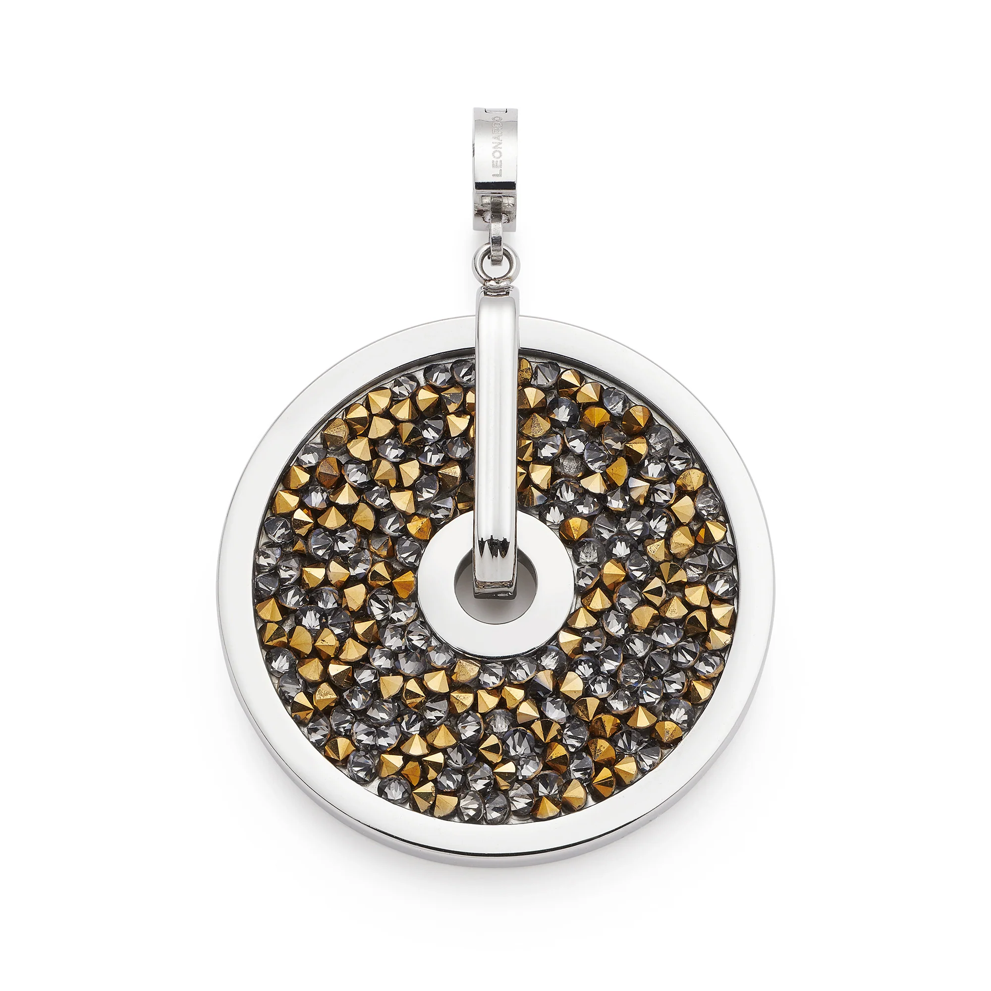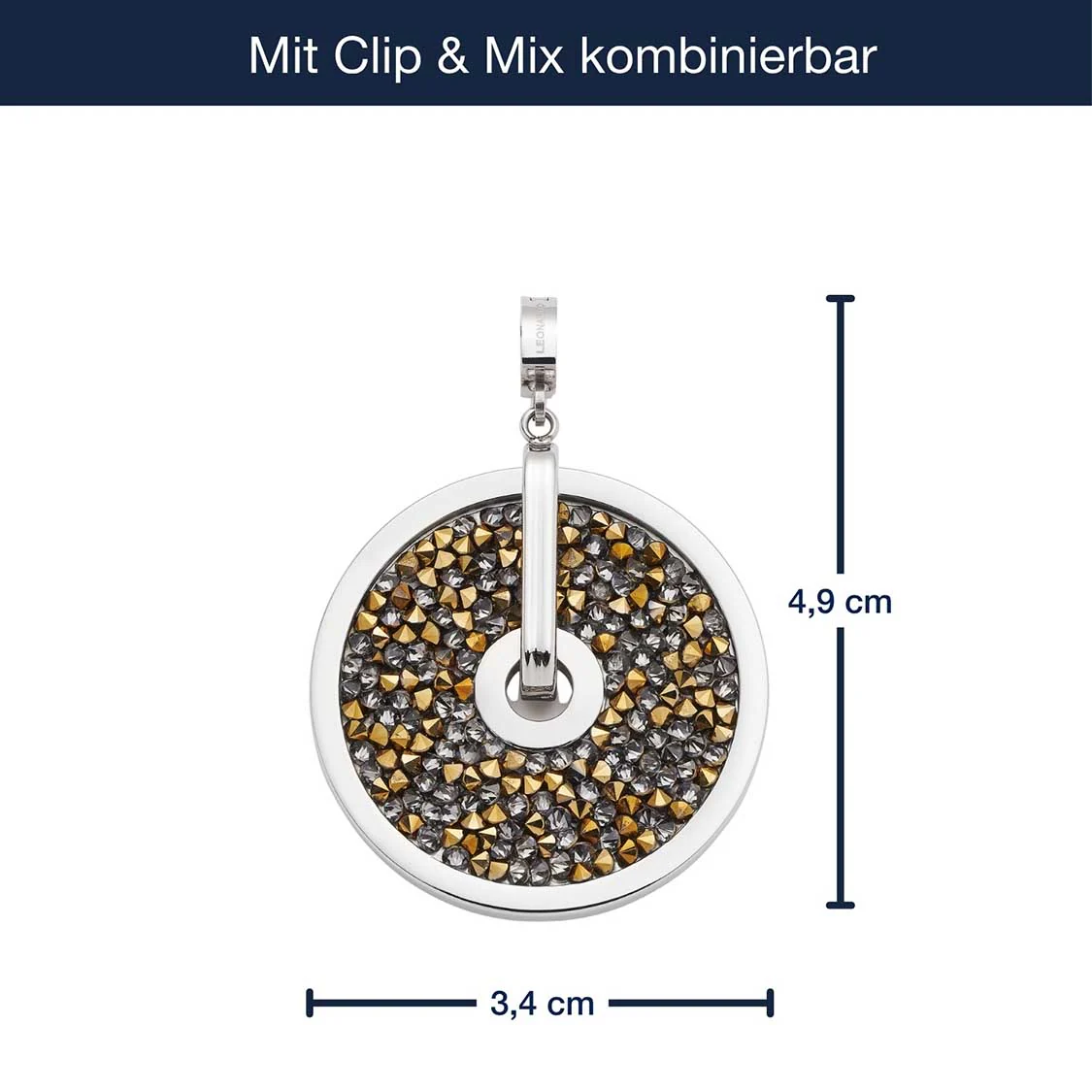 Der Anhänger BLANCA GREY bringt eine besondere Note in Deinen Schmuck-Look. Die runde Scheibe aus poliertem Edelstahl fasziniert mit einer edlen Einlage aus irisierenden Glaskristallen in Grau und Bronze. Ein raffiniertes Detail: Dank der mittigen Spange lässt sich der Anhänger drehen und sorgt so für einen dynamischen, glitzernden Effekt bei jeder Bewegung. Mit dem Clip in Größe M lässt sich der Anhänger flexibel an Deiner Lieblingskette oder einem Armband befestigen und verleiht Deinem Schmuckstück im Handumdrehen ein elegantes Highlight.