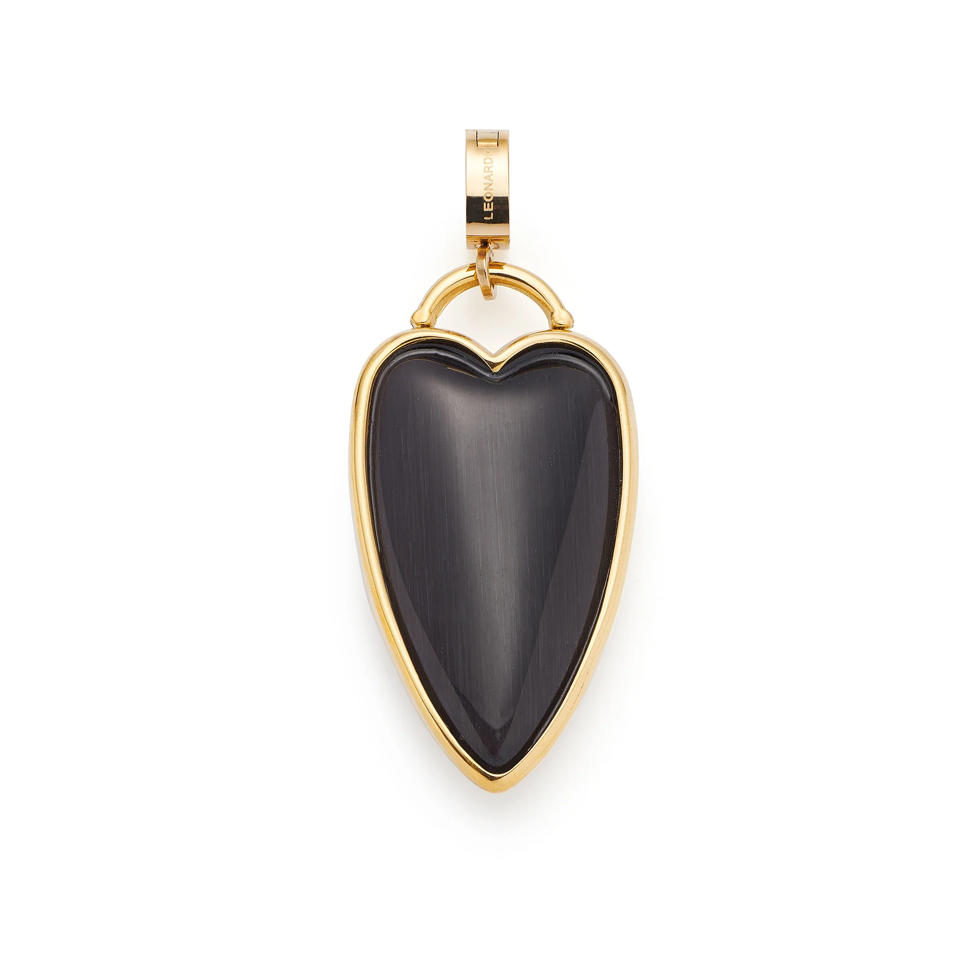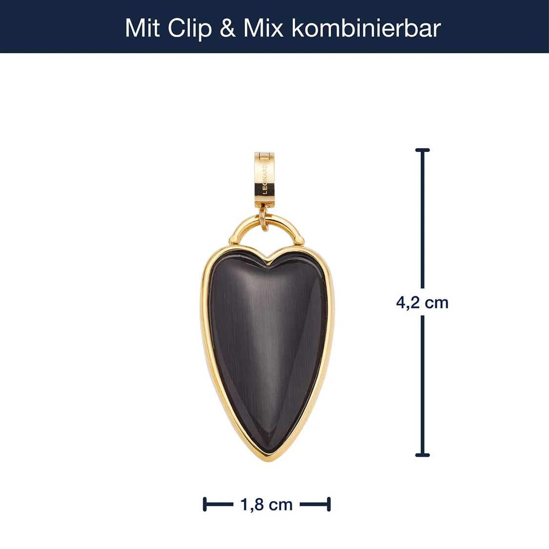 Der Anhänger HANNA steht für zeitlose Romantik mit modernem Flair. Das sanft gewölbte, langgestreckte Herz aus schwarzem Catseye wird von einem filigranen Goldrahmen eingefasst. Ein dezenter, aber ausdrucksstarker Begleiter für jeden Tag. Mit dem Clip in Größe M lässt sich das Herz flexibel an Ketten oder Armbändern anbringen und sorgt für stilvolle Liebeserklärungen.