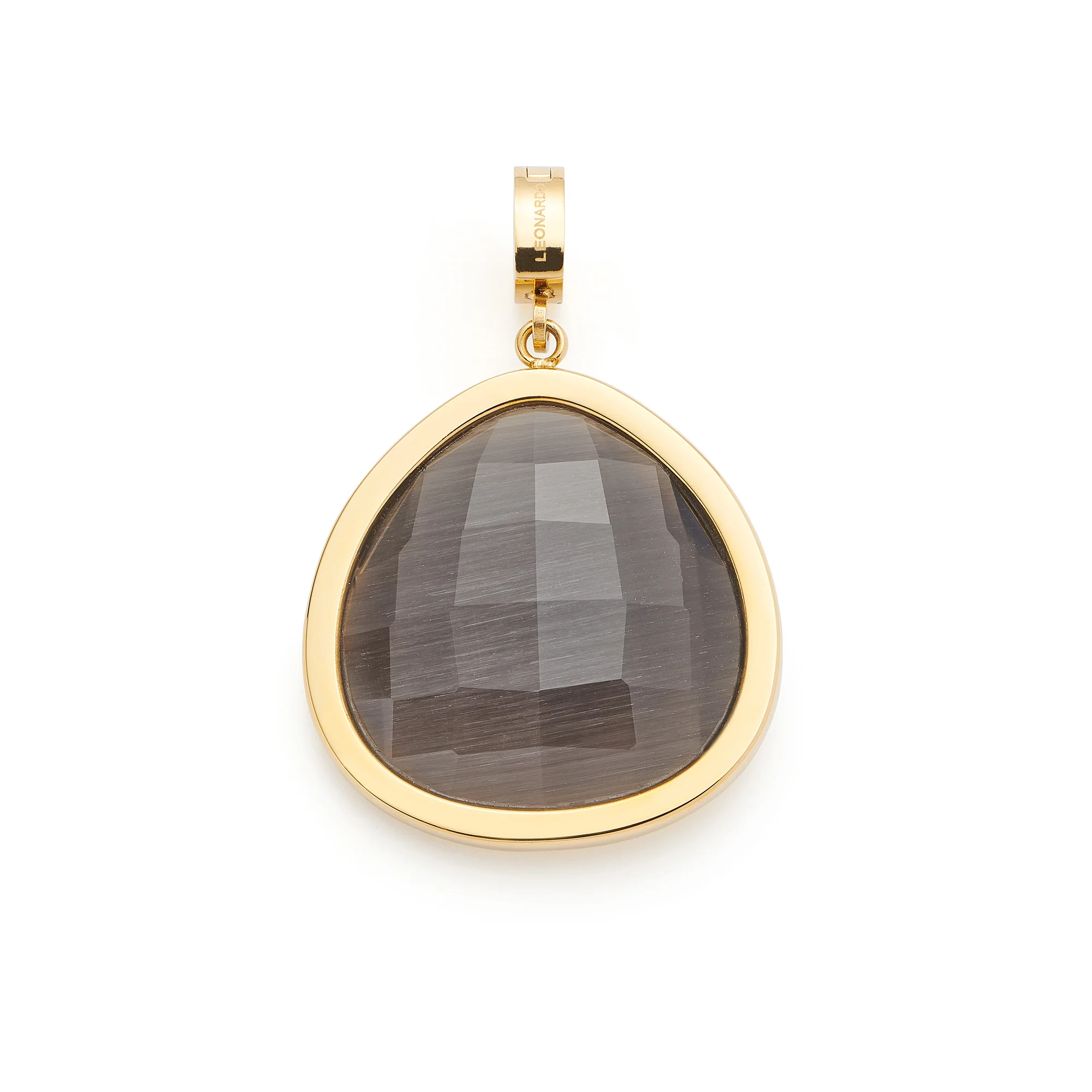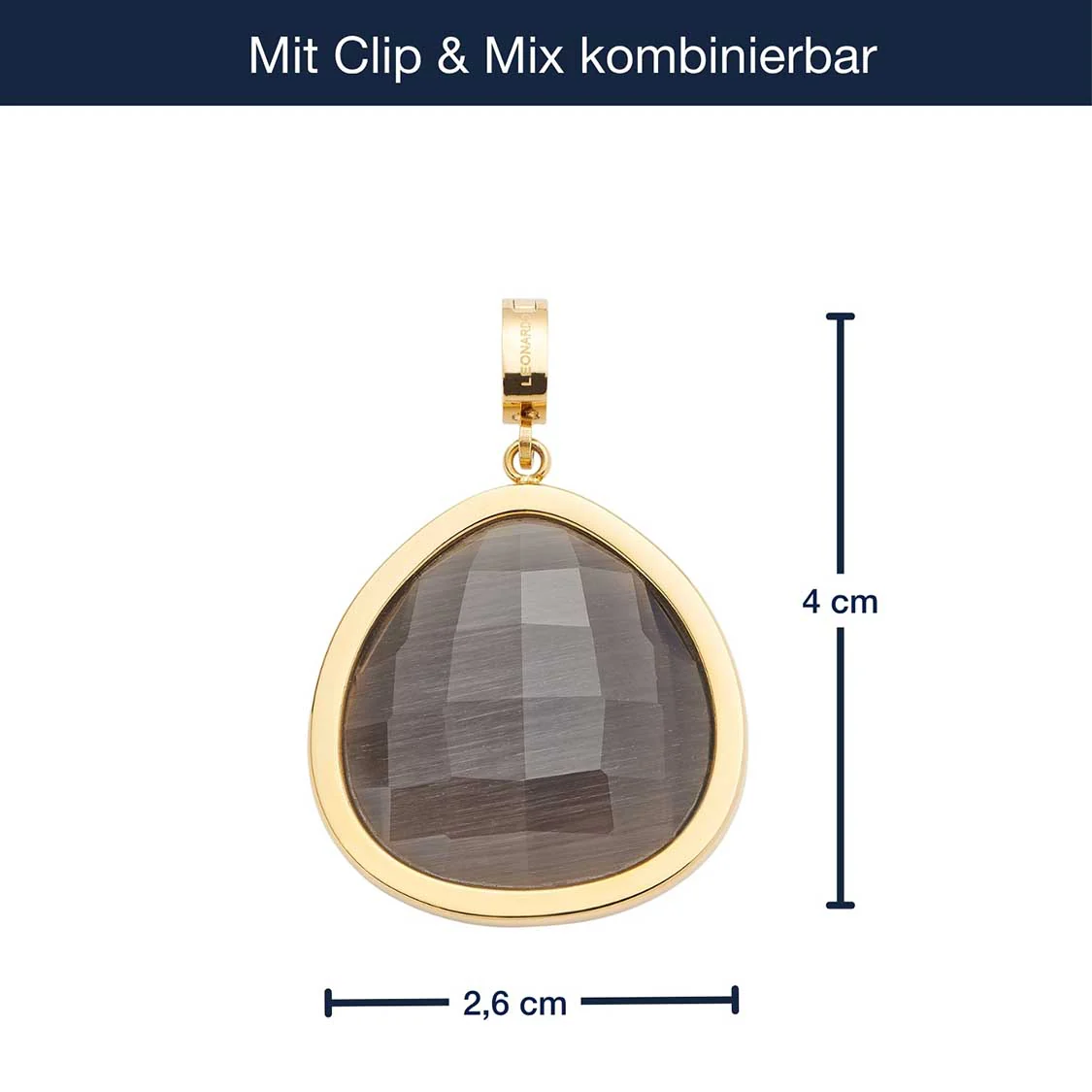 Der Anhänger MINA beeindruckt mit seinem modernen, geometrischen Design. Der gewölbte Catseye-Stein in elegantem Grau erhält durch den Schachbrettschliff eine besondere Tiefe und wird von einem klaren Goldrahmen eingefasst. Die abgerundete Dreiecksform macht MINA zu einem stilvollen Blickfang, der sich mit Clip Größe M mühelos in Deine Schmuckkombination integrieren lässt