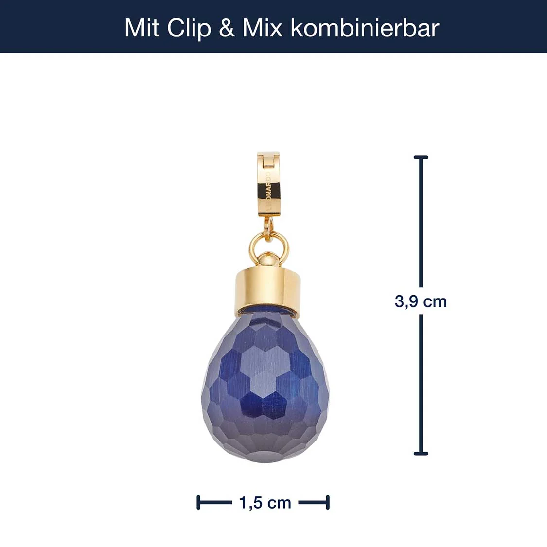 Der Anhänger BILOU verzaubert mit seiner tropfenförmigen Eleganz. Der nachtblaue Catseye-Stein mit feinem Facettenschliff wird von einer schlichten, goldenen Kappe gehalten und strahlt stilvolle Zurückhaltung aus. Mit dem Clip in Größe M lässt sich BILOU mühelos an Ketten oder Armbändern befestigen – perfekt für einen Hauch von Mystik in Deinem Schmuckstyling.