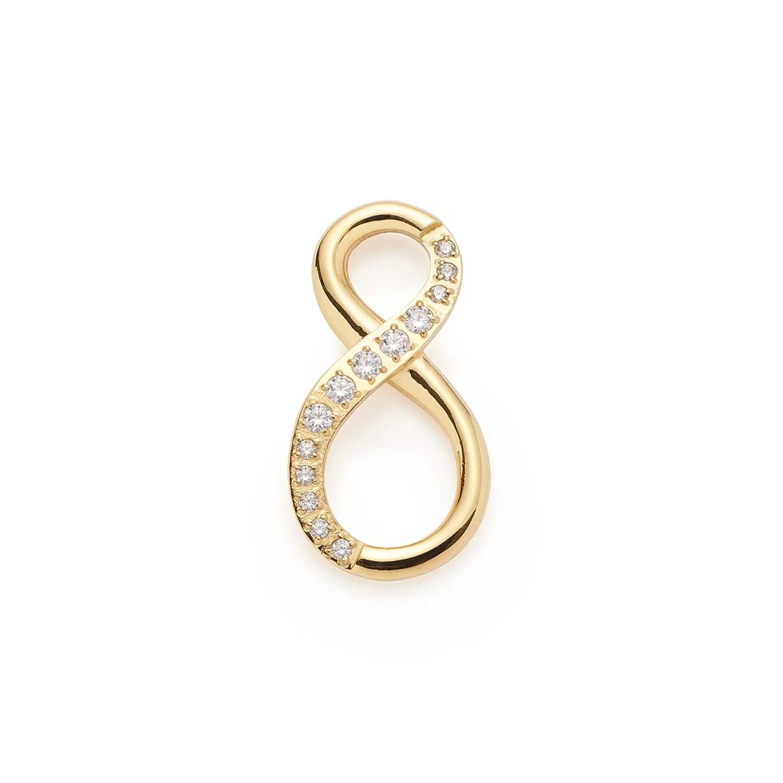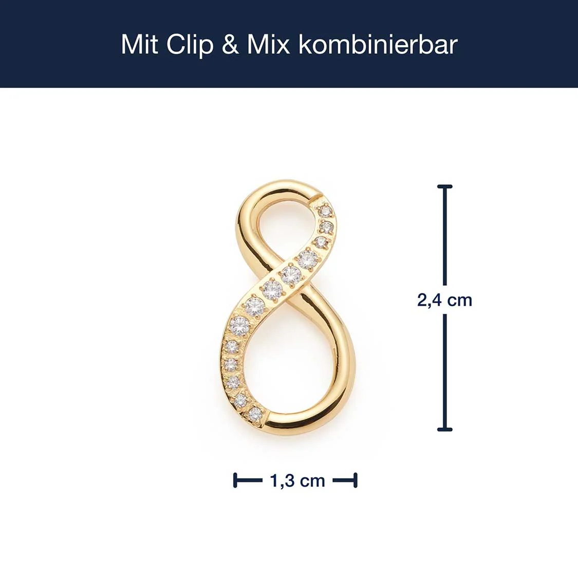 Der CLIP RING SENTA in Gold ist ein luxuriöses Schmuckelement, das Eleganz und Wandelbarkeit vereint. Gefertigt aus poliertem Edelstahl mit goldener Ionenplattierung, zeigt er sich in der Form einer Acht, die für fließende Bewegung und Harmonie steht. Der teilweise mit funkelndem Pavé-Zirkonia besetzte Clip reflektiert das Licht auf edle Weise und setzt so feminine Glanzpunkte. Ob in einer Kette oder einem Armband – SENTA sorgt als Zwischenelement für stilvolle Individualität und wertet jedes Schmuckstück auf.