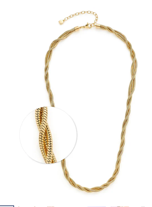 Zart und doch ausdrucksstark – diese Kette ermöglicht dir zahlreiche Stylingvarianten. Ob zu eleganten, sportiven oder klassischen Looks, mit der Kette aus vergoldetem Edelstahl hast du die freie Wahl. Drei locker gewundene Schlangenketten stehen hierbei im Mittelpunkt und kreieren eine schöne Kordeloptik. Die Kette legt sich sanft auf die Haut und kann dank der Verlängerungskette in der Länge angepasst werden. Ob mit einem persönlichen Anhänger erweitert oder solo getragen, die Kette passt einfach jeden Tag.
