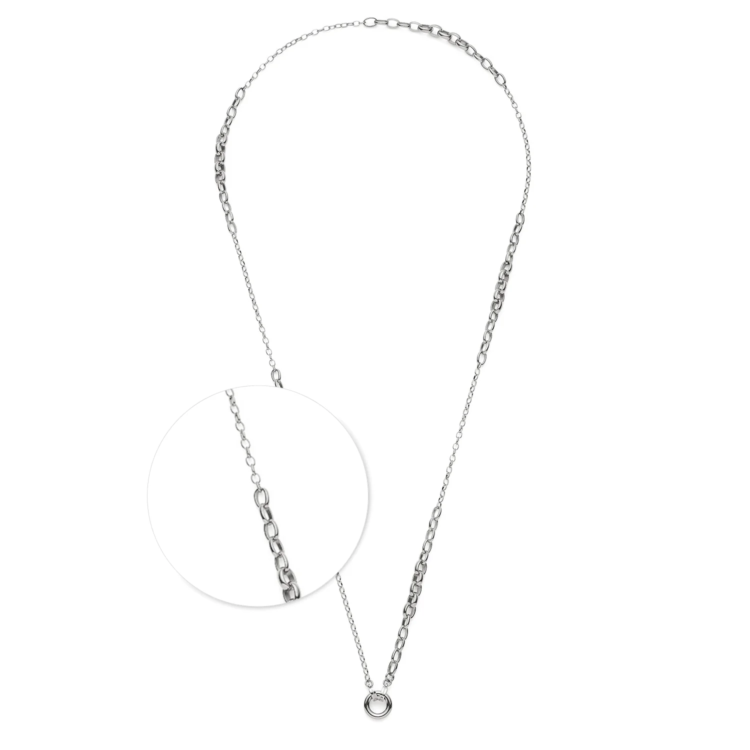 Die Halskette SUZANNE steht für markante Eleganz mit modernem Twist. Ovale Kettenglieder im sanften Größenverlauf wechseln sich harmonisch mit filigranen Weitankerelementen ab und verleihen der langen Kette ihren besonderen Charakter. Zwei dezente Clips halten den schlichten Ring, der sich individuell mit Clip & Mix Anhängern gestalten lässt. Ob als Statement-Piece oder dezent veredelt – SUZANNE passt sich Deinem Stil flexibel an und sorgt für einen ausdrucksstarken Auftritt.