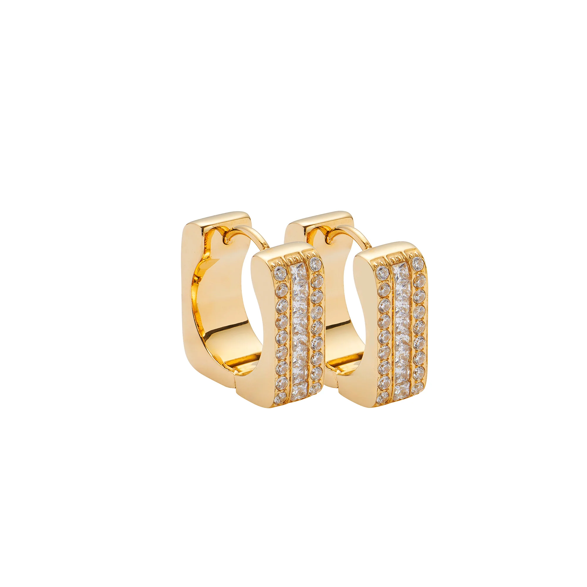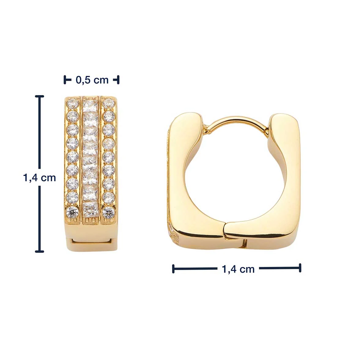 Die Creole SARAH bringt glamourösen Glanz in Deinen Alltag und ist zugleich ein Highlight für festliche Momente. Die kleine, quadratische Klapp-Kreole überzeugt durch ihre moderne Form und den dreireihigen Pavé-Besatz auf der Vorderseite. Die funkelnden Zirkonia-Steine fangen jedes Licht ein und setzen stilvolle Akzente, ohne aufdRinglich zu wirken. Wähle zwischen der kühlen Eleganz von poliertem Edelstahl oder der warmen Ausstrahlung in goldfarbener Ionenplattierung – ein vielseitiges Schmuckstück für jeden Anlass.
