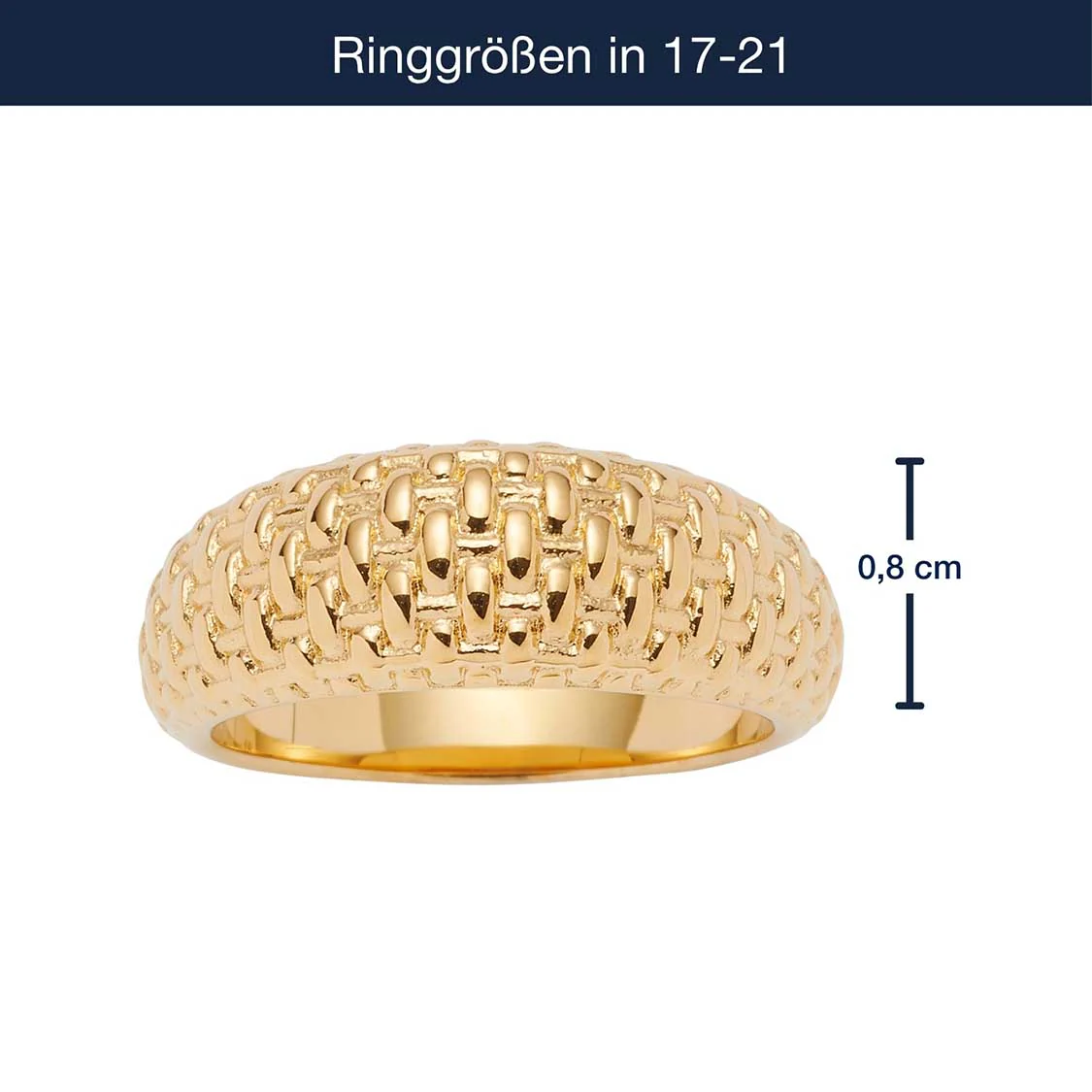 Der Ring PINOU überzeugt mit seiner harmonischen Mischung aus markanter Form und feinem Detail. Der mittelbreite, gewölbte Ring zeigt sich in edler Goldoptik und besticht durch seine besondere Oberfläche in Flechtoptik. Dieses dezente Muster verleiht dem Schmuckstück eine elegante Struktur und macht ihn zu einem Blickfang für jede Gelegenheit. Ob als stilvolles Einzelstück oder in Kombination mit dem passenden Anhänger – PINOU unterstreicht Deinen Look mit moderner Raffinesse.