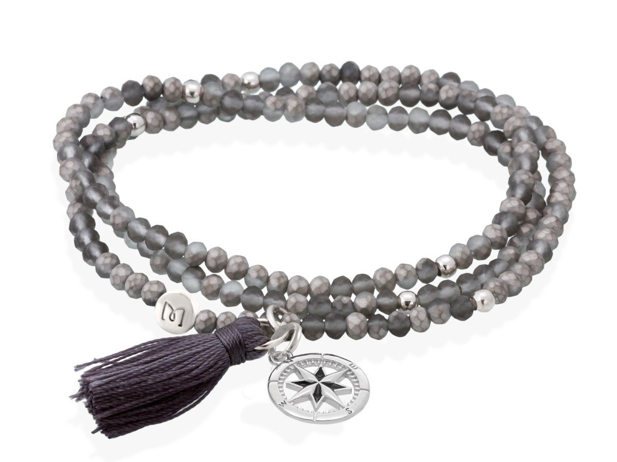 Armband in Silber (925) mit elastischem Silikonband und facettiertem Strassglas, mit KOMPASS Charme. (54 cm insgesamt)