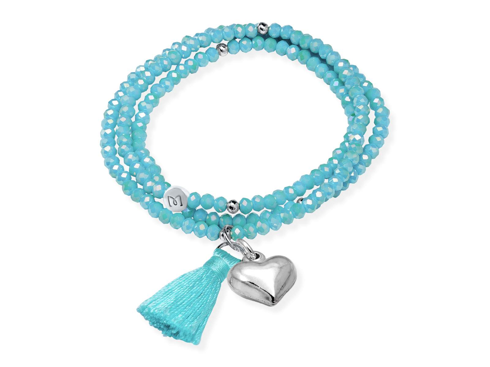 Armband aus Sterlingsilber (925) mit rhodinierter Beschichtung mit elastischem Silikonkern und facettiertem Strasskristall, mit Herzanhänger. Große Größe von 18 cm. (54 cm. insgesamt)