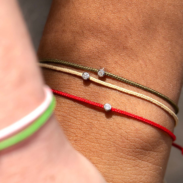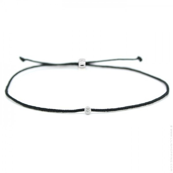 Mon Petit Diam besteht aus einem Diamanten der IE-Qualität von 0,03 Karat. Lünette aus rhodiniertem 925er Silber oder rosa oder gelbem Vermeil und einem spinndüsengefärbten Polyamiddraht.