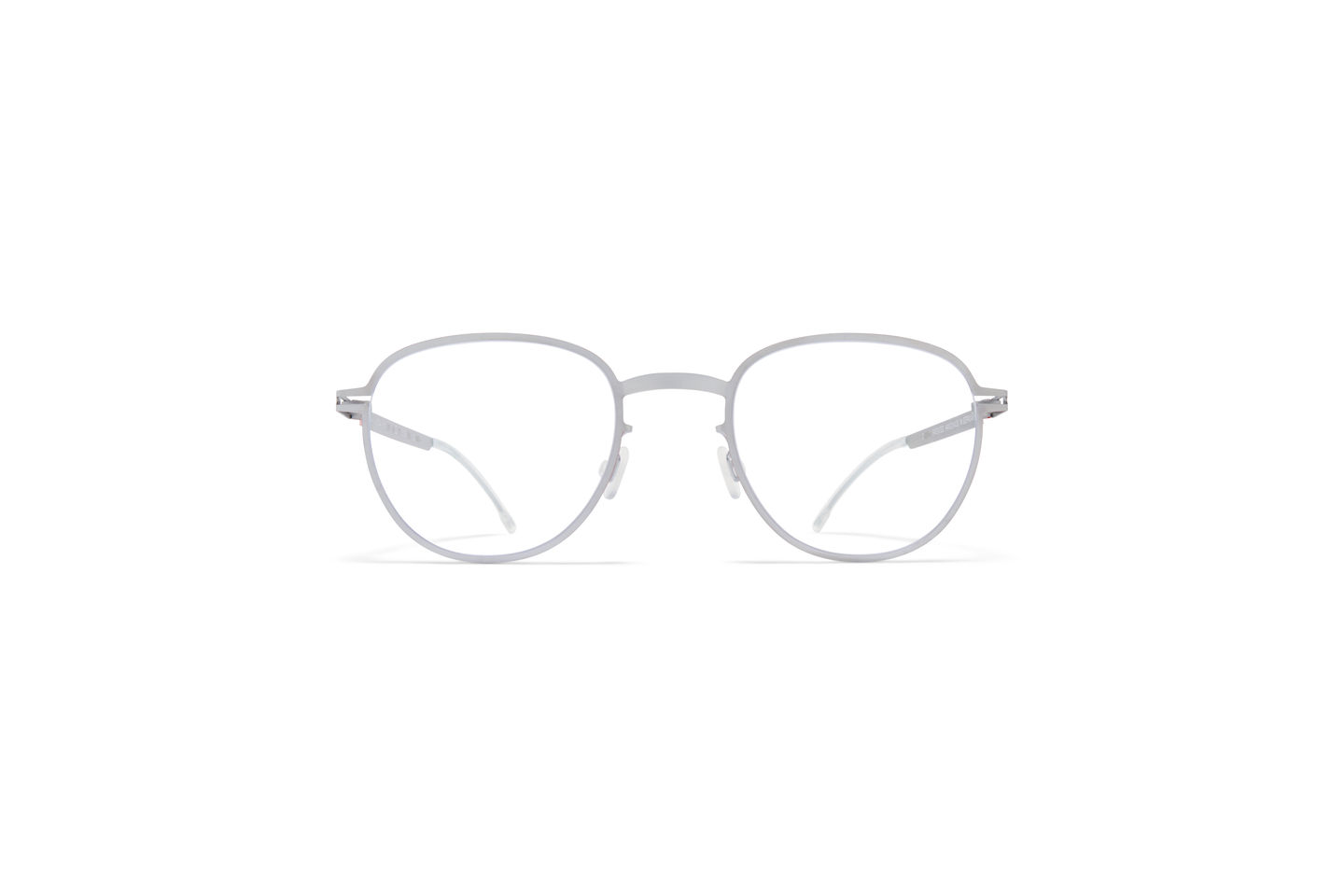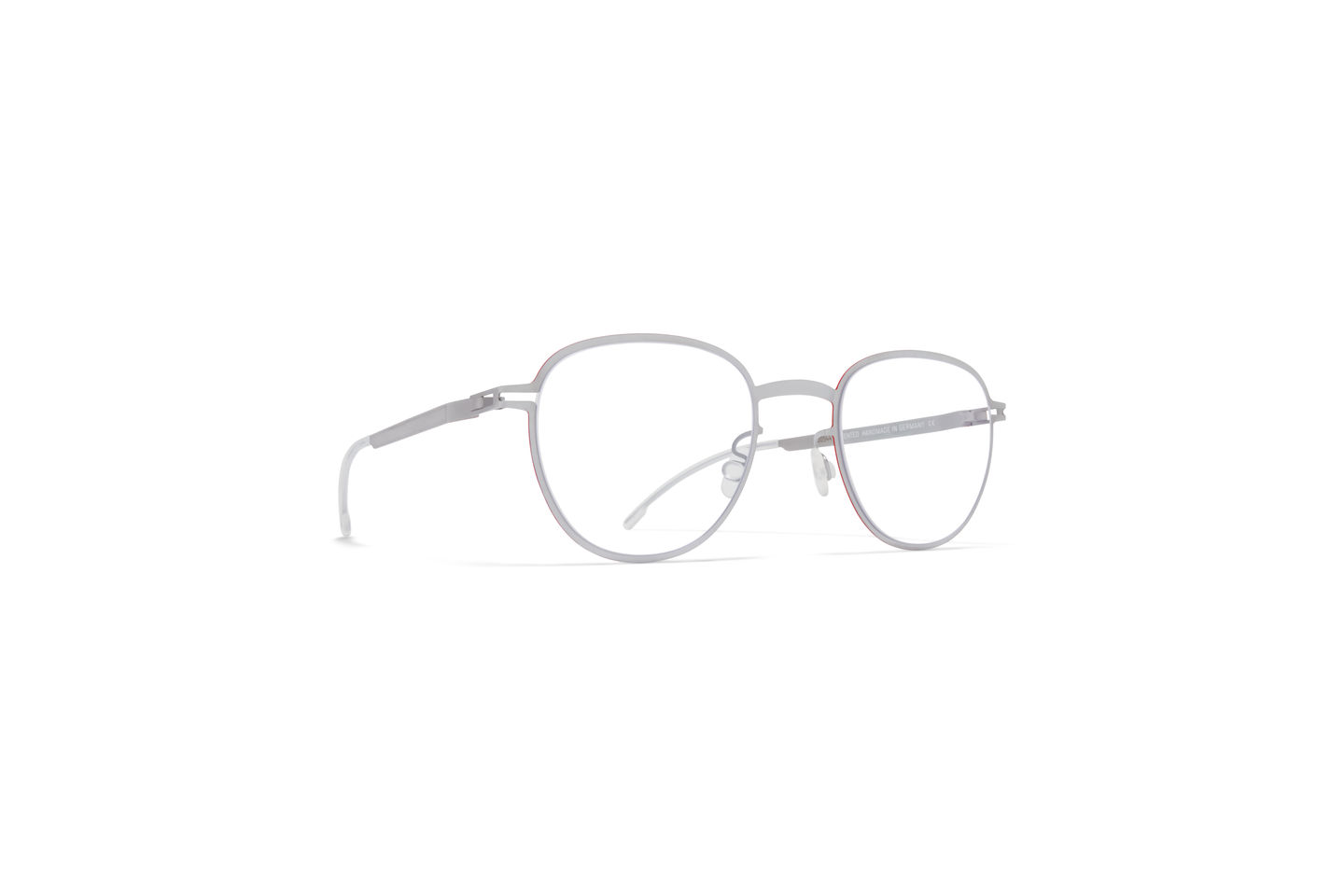 ML09 in der Farbe Leica Silver/Leica Red Edges mit Clear Gläsern aus der MYKITA | LEICA Kollektion ist eine Panto Brille in einem puristischen, zeitlosen Look aus leichtem Edelstahl. Handgefertigt in Berlin.