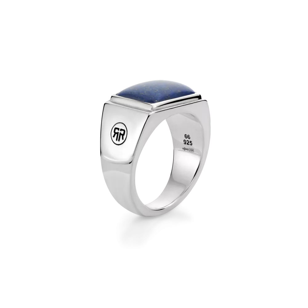Rechteckiger Siegelring aus 925er Silber, handgefertigt und mit einem blauen Lapislazuli-Edelstein.