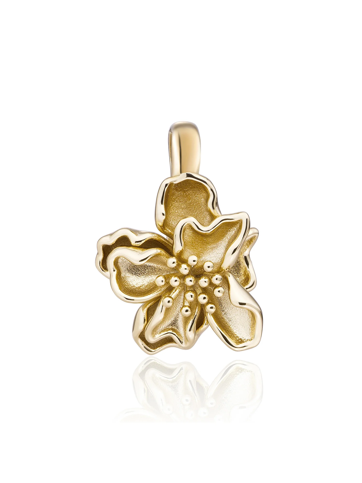 Botanischer Clip-Anhänger. Das botanische Design verleiht Ihrem Dekolleté sanfte Eleganz, während der Clip vielseitige Stylingmöglichkeiten bietet. Wechseln Sie Kette, Länge und Material ganz einfach, um Ihren Look an Büro, Freizeit oder Abendessen anzupassen. Tragen Sie den Anhänger hoch für einen minimalistischen Look oder kombinieren Sie ihn mit einer Kette und einer zarten Perlenkette für einen Lagenlook. Die Oberfläche ist glatt und fühlt sich angenehm auf der Haut an. Ergänzen Sie das Set mit kleinen Ohrsteckern oder einem Armreif, der das organische Thema dezent aufgreift. Ein zeitloses, persönliches Schmuckstück, das Saison für Saison einen verspielten, strahlenden Akzent setzt und sich mühelos Ihren Plänen anpasst.