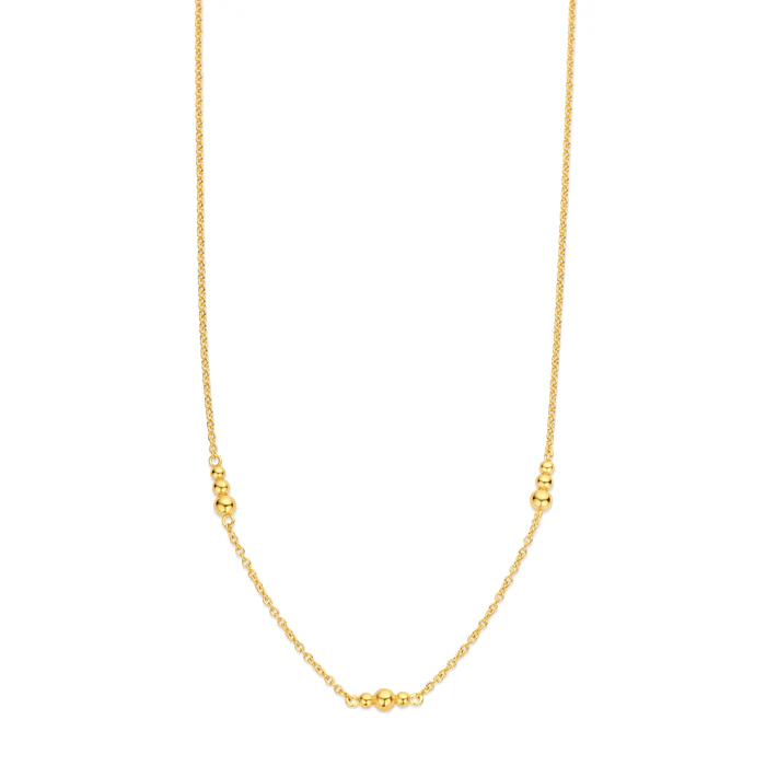 Die schlichte und schöne Regitze Halskette ist mit drei wunderschön geformten Kugeln in Fortsetzung gestaltet, die einen stilvollen und zeitlosen Look erzeugen. Es besteht aus recyceltem 18kt vergoldetem 925er Sterlingsilber, das das minimalistische Design mit einem nachhaltigen Ansatz vereint.