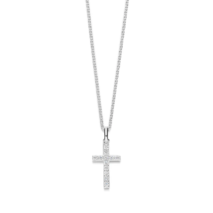 Diese göttliche Halskette aus recyceltem 925er Sterlingsilber zeigt einen wunderschönen und klassischen Kreuzanhänger, verziert mit funkelnden Zirkoniasteinen, die einen eleganten und strahlenden Ausdruck verleihen. Trage ein Symbol von Glauben und Stärke nah an deinem Herzen – ein Schmuckstück, das dich täglich an deine Werte und deinen inneren Frieden erinnert.