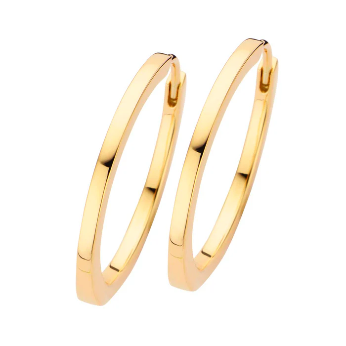 Diese Ohrringe aus der Serie Passion sind mit einer polierten Oberfläche aus vergoldetem Sterlingsilber gefertigt und in zwei Größen erhältlich, von denen die größte einen Durchmesser von 2,5 cm hat. Die Creolen sind in einem klassischen Design mit eckigen Seiten gehalten und passen zu jedem Anlass.