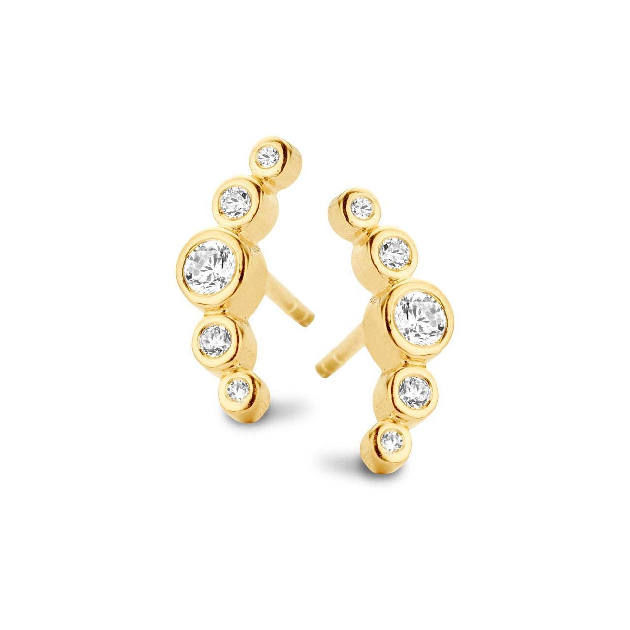 Diese Temptation Ohrringe sind mit einer polierten Oberfläche aus vergoldetem Sterlingsilber gefertigt. Die Ohrstecker sind mit fünf klar facettierten Zirkonoxid in verschiedenen Größen ausgestattet, die den Ohrringen Stil und Eleganz verleihen. Die Temptation-Serie ist sowohl im passenden Ring als auch in der Halskette erhältlich.