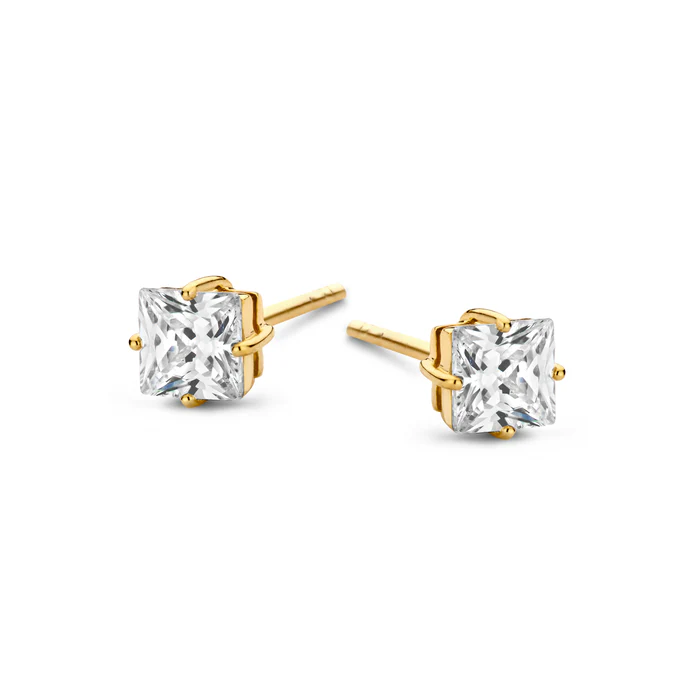 Der zeitlose Cassiopeia Ohrring mit Zirkonia im Prinzessschliff ist 0,4 cm lang und 0,4 cm lang.