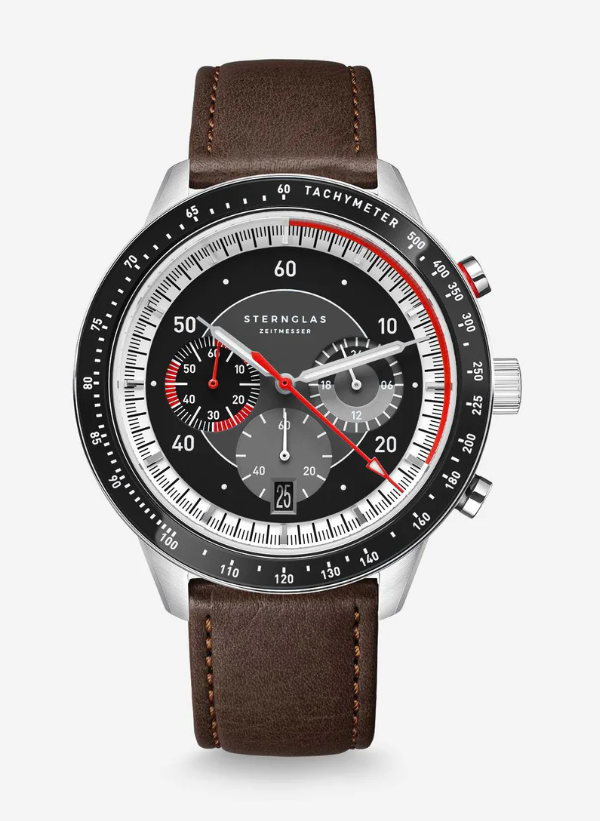 Der Tachymeter neu definiert: Ein Performance-Upgrade auf allen Ebenen, inspiriert vom Rennsport der 70er: Robuster Chronograph mit 44 mm Durchmesser, präzises Seiko Mecha-Quartz-Werk, Multi Layer Zifferblatt mit Tachymeterskala und Luminova-Zahlen. Für alle, die das Tempo im Leben selbst bestimmen.