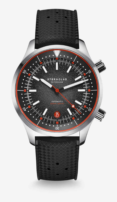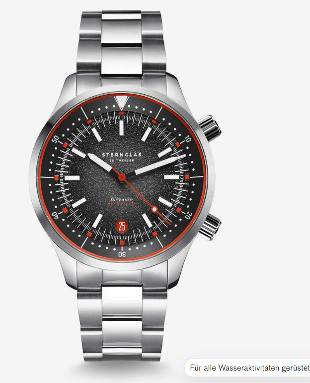 | Zifferblatt | schwarz-rot (nachtleuchtendes Luminova) |
