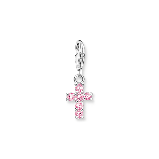 CHARM-ANHÄNGER PINKES KREUZ SILBER