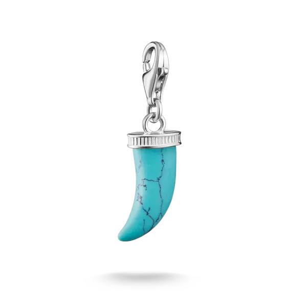 Dieser Zahn-Charm kombiniert 925 Sterling Silber mit einem glatt polierten, türkisfarbenen Stein, der an weite Landschaften und endlose Horizonte erinnert.