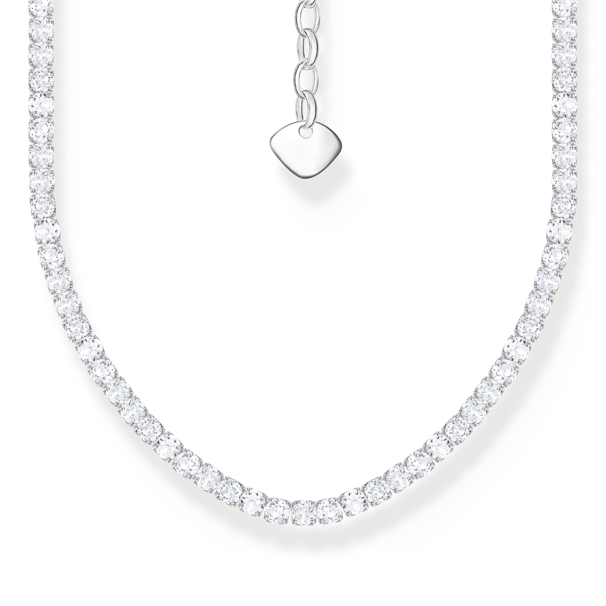 - Rundum mit weißen Zirkonia-Steinen im Stil einer Tennis-Kette besetzt