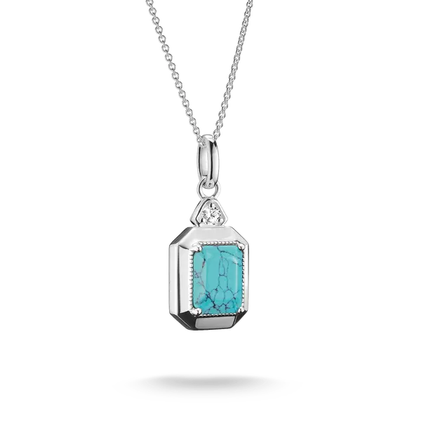 - Elyndra Kette aus recyceltem 925 Sterling Silber mit achteckigem Stein aus imitiertem Türkis