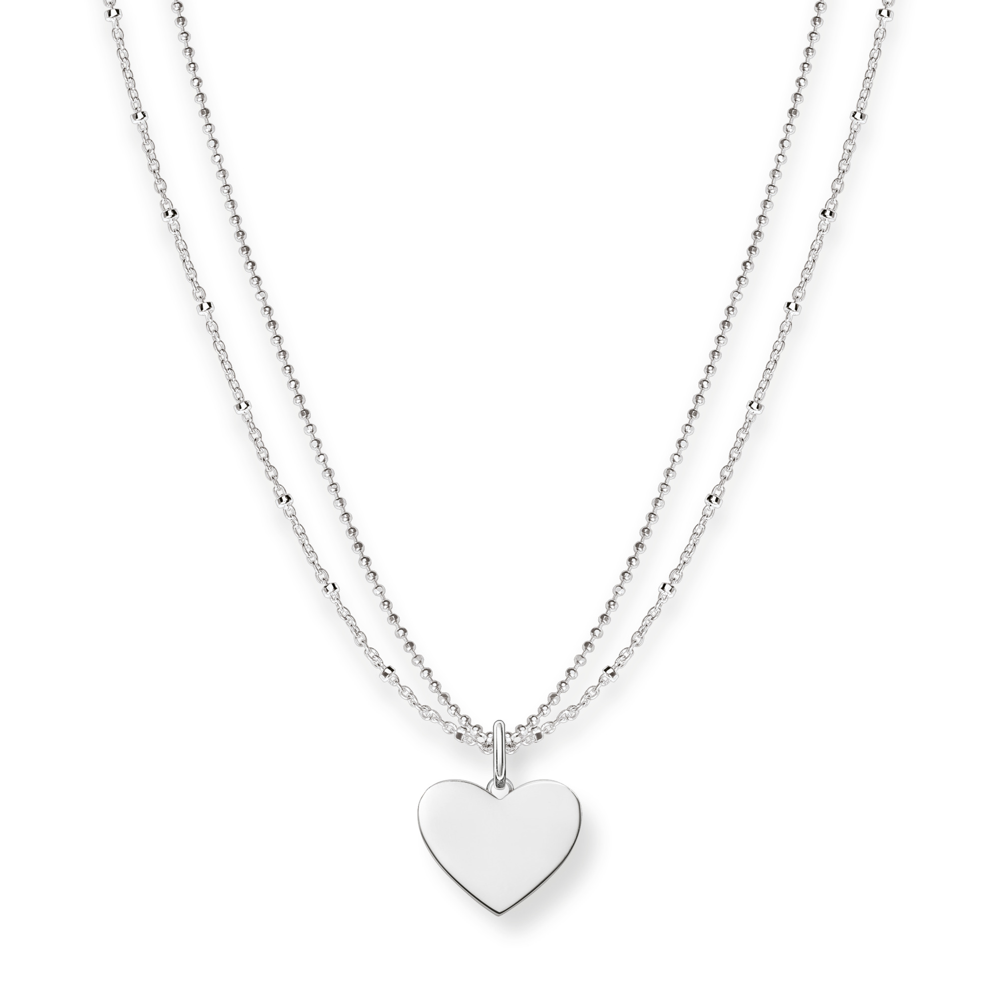 Nah am Herzen: Die feminine, gravierbare Doppelkette mit Herzanhänger transportiert die feine Liebe raffiniert über die Verspieltheit des Schmuckstücks und mit THOMAS SABO Logo auf der Rückseite versehen.