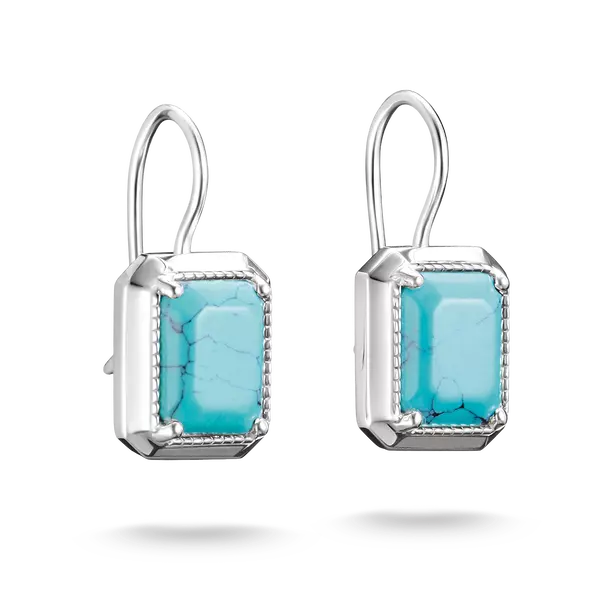 Diese Elyndra Ohrhänger aus recyceltem 925 Sterling Silber bringen sommerliche Leichtigkeit in deinen Look. Ein imitierter Türkis im feinen Oktagonbrilliantschliff strahlt in kräftiger Farbe und setzt ein klares Statement.